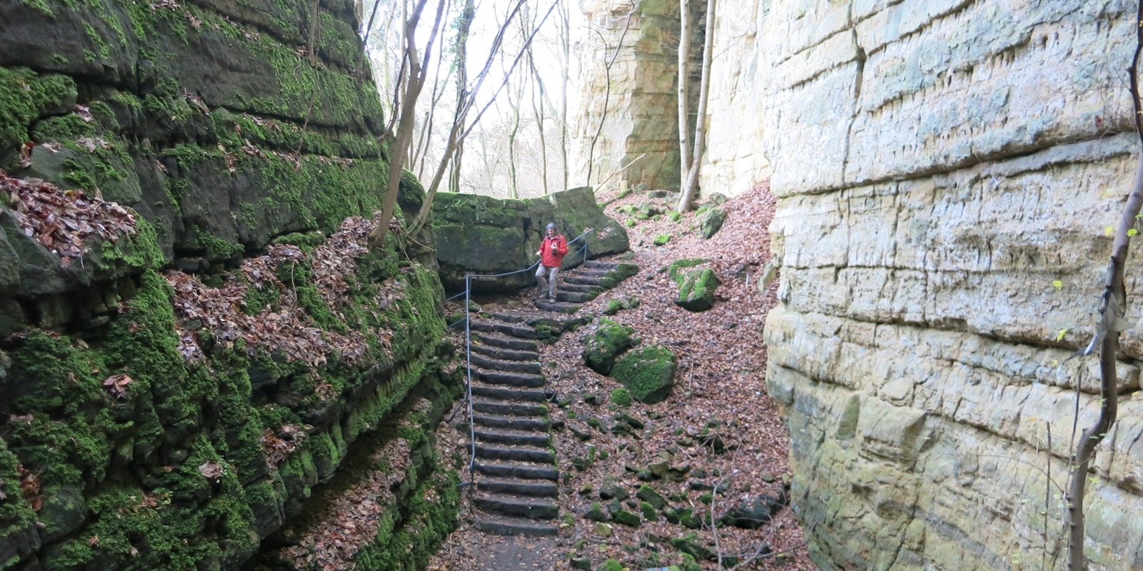 Der Mullerthal Trail führt auf einer Länge von 112 km durch alle landschaftlichen Besonderheiten der Region Müllerthal – Kleine Luxemburger Schweiz. Pfadige Wege verlaufen durch Wälder und Wiesen, um immer wieder auf beeindruckende Schluchten und bizarre Felsen zu treffen.