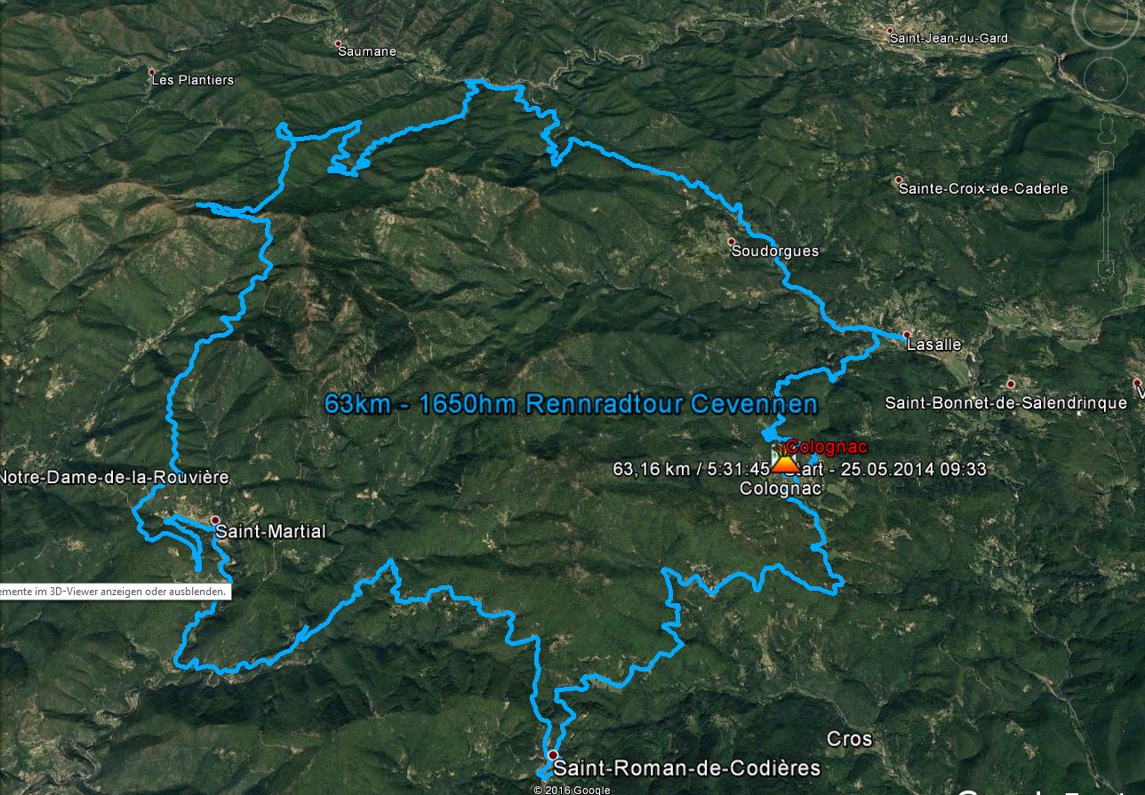 Das Team Provence_Relax springt 2014 nach Colognac, einem kleinen Dorf auf 600m in den CEVENNEN. Ein schönes Haus eines bekannten deutschen Jazzmusikers beherbergt die 4 Rennradfahrer und ist unser Ausgangspunkt für wunderschöne Rundfahrten durch die hügelige Landschaft. Einsame, schmale Straßen, die sich in einem permanenten Auf und Ab durch das Land schlängeln, bilden mit den entsprechenden Aussichtspunkten eine tolle Kulisse zum "aktiven Entspannen" Nach dem obligatorischen Einkehrschwung am Ende der Tour mußte jedes Bier im Tal allerdings über 93 Kurven bergauf geradelt werden.